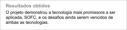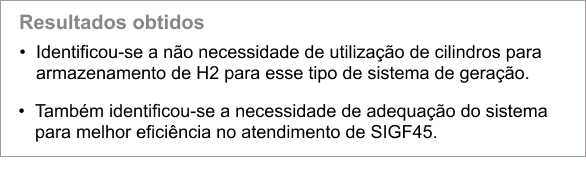 Pesquisa Aplicada e Desenvolvimento Experimental de um Sistema de Geração de Energia Elétrica por uma Célula a Combustível e Hidrogênio advindo da reforma do Gás Natural. O estudo também analisou o comportamento de duas tecnologias distintas de célula a combustível, PEM e SOFC, para o sistema de Geração Distribuída.
