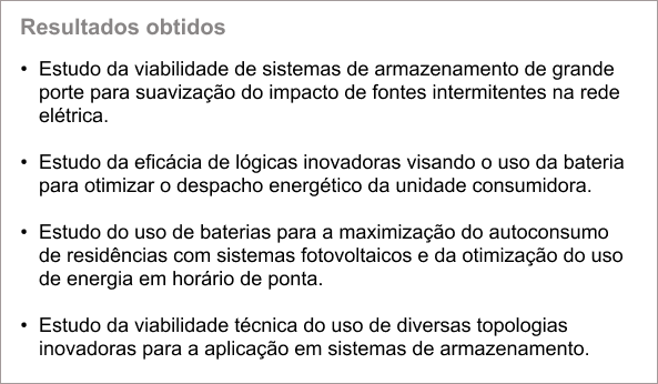 Análise e desenvolvimento experimental de sistemas de armazenamento de energia de diferentes portes e aplicações: grande porte (usina híbrida eólica-solar); médio porte em ambiente de carga crítica (aplicado em universidade); pequeno porte com integração de sistemas de acumulação (residencial);
